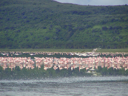 フラミンゴで有名なナクル湖。この日はいつもの半分くらい。
