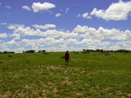 青い空に緑の大地、そこにいる赤いマサイ族はそれだけ絵になる。