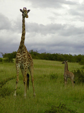 親子のマサイきりん。マサイきりんはアミメきりんと模様が違う。